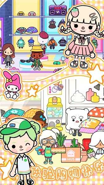 在大商场购买新款衣服、包包、礼物等,装扮自己的温馨小家,邀请更多的小朋友一起探索幸福小镇!