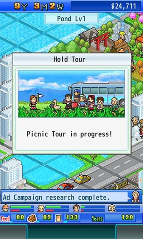 由知名游戏开发商 Kairosoft 打造的手游新作《鱼潭公园》( Fish Pond Park )现在已经登陆安卓平台。本作是一款模拟经营游戏,游戏开始玩家将拥有一片光秃秃的鱼塘,你要做的就是不断开发鱼塘的利用价值来吸引游客进行营利。你可以加入多种服务,如雇佣导游,建造旅馆、温泉、或者更多其它的建筑,将其打造为田园般的旅游胜地,最终进入全国自然景点排名前列。
