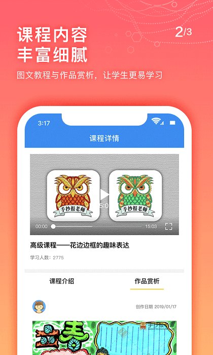 3、同时拥有图文教程和作品赏析功能,帮助学生更容易地学会技巧;