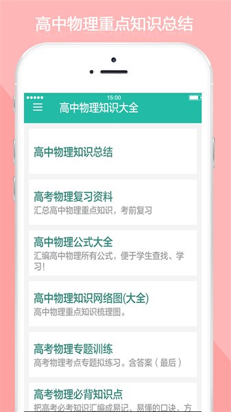 涵盖了高中物理各个章节的内容知识点;让学生可以随时随地的学习重要知识点;