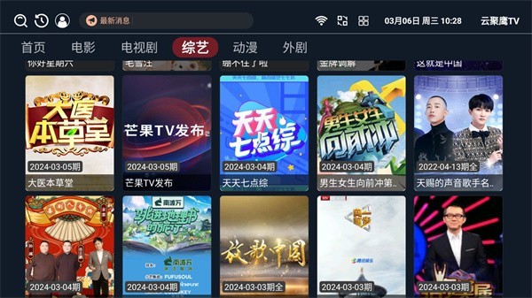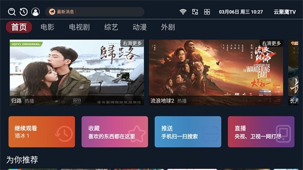 1、打开云聚鹰TV之后,我们可以在云聚鹰TV上发现下图所示的内容,这里拥有电视剧,电影,动漫,综艺等节目