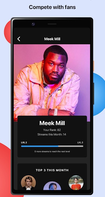 为你每天做的事情收集星星:听音乐。20个流= 1星(最多5星/天),可以用来从你最喜欢的艺术家那里收集奖励。我们一直在增加新的艺术家和奖项。