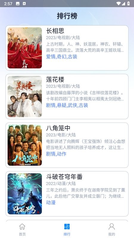 5、列表排行:提供各种排行榜,覆盖各个类别的热门作品,实时更新,自由选择;