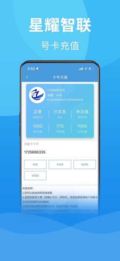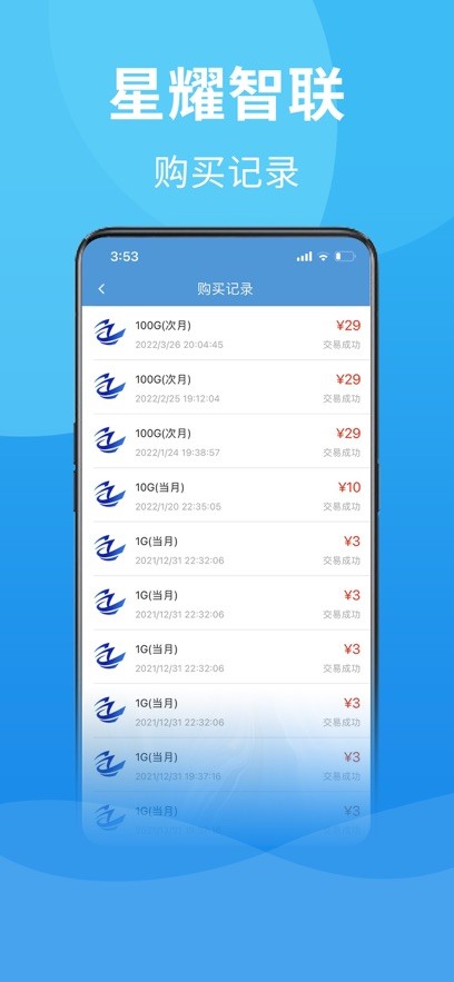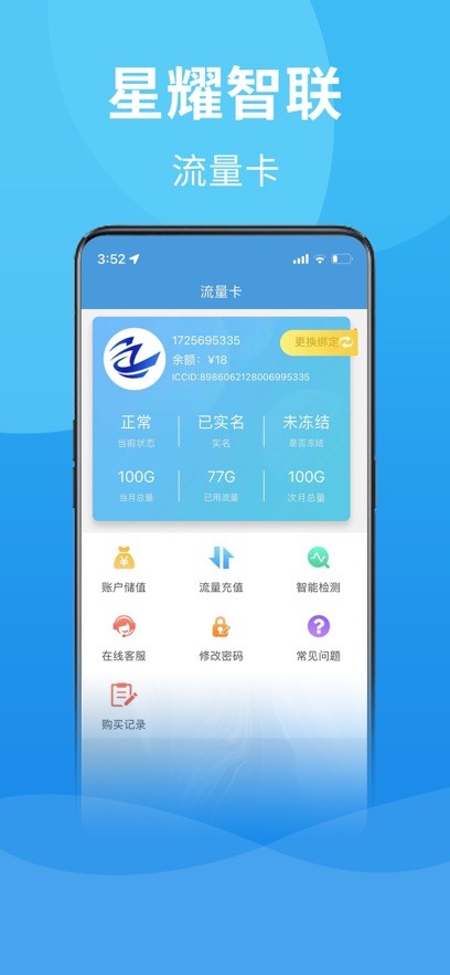 星耀智联app是一款功能强大的手机应用,主要提供话费和流量充值服务,还有丰富的流量卡套餐选择,支持多种支付方式,操作简单方便。它能详细记录充值和购买记录,随时查看使用情况,到账速度快,用户体验很好。