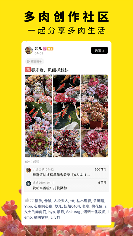 总的来说,如果你对多肉感兴趣或者已经是一个爱好者,这个应用绝对值得一试,不仅能学到东西,还能找到一群有趣的伙伴一起交流。