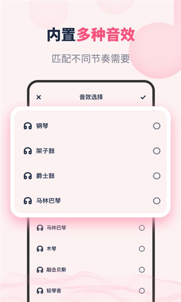 节奏节拍器,采用浅色系作为界面主色调,风格简约、功能丰富。