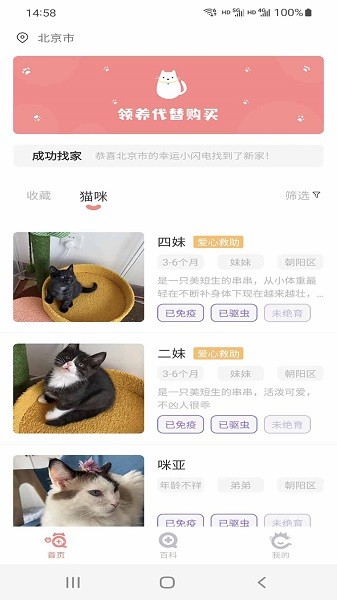 猫先生,猫咪无偿领养, 一站式养猫服务软件,包括 猫咪领养,猫咪记录工具,猫咪知识百科个APP提升你的养猫体验,一个APP解决你所有的 养猫问题。快来下载猫先生APP体验吧!