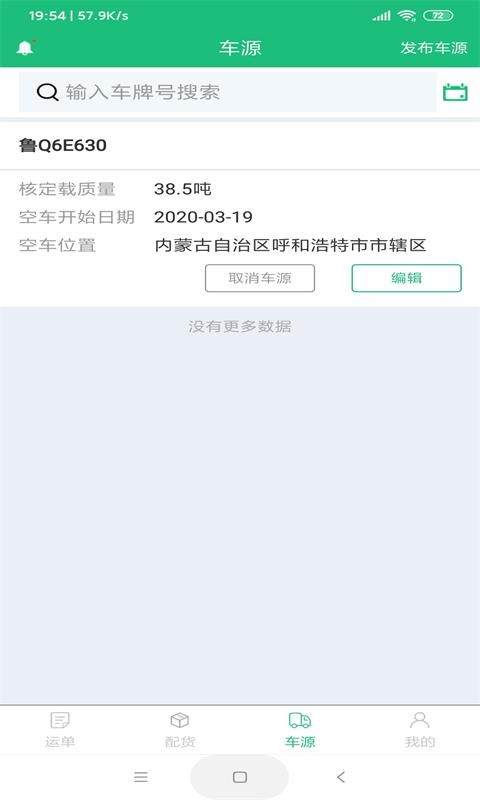 5、车源模块可轻松发布空车时间及空车地点,及时发布后匹配货主货源,避免空驶。