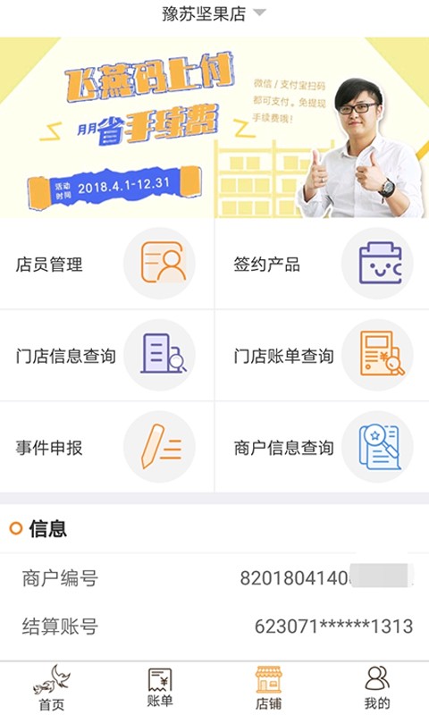 飞燕码上付商户软件是为旗下商户朋友提供的线上支付收款管理平台,商户信息实时记录,一目了然,可以随时查询查看,还具备店员管理、门店账单查询、事件申报等功能,交易明细一手掌握,扫码收款更加便捷,操作简单,管理高效!