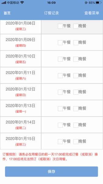 3.在需要在餐厅就餐的时候,需要提前一天完成订单的预约。