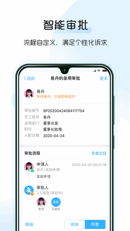 3、在首页中查看自己的待办事项内容,快速了解各员工的考勤信息,在线进行审批