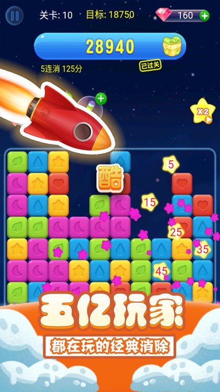 1、精美的游戏画面,在美轮美奂的夜空下展开一场奇妙的消除之旅