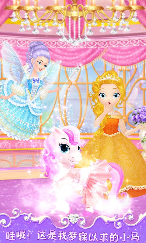 妈咪妈咪哄,仙女教母挥舞魔杖,变出一只可爱小马,这是送给莉比小公主的生日礼物,快来和她们一起玩耍吧!