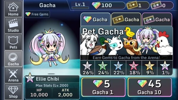 1、从一百多个背景中进行选择以创建完美的场景!更有趣,收集和扭蛋稀有宠物,并在体育场训练它们!今天进入扭蛋工作室!灯光,相机,让我们行动起来!