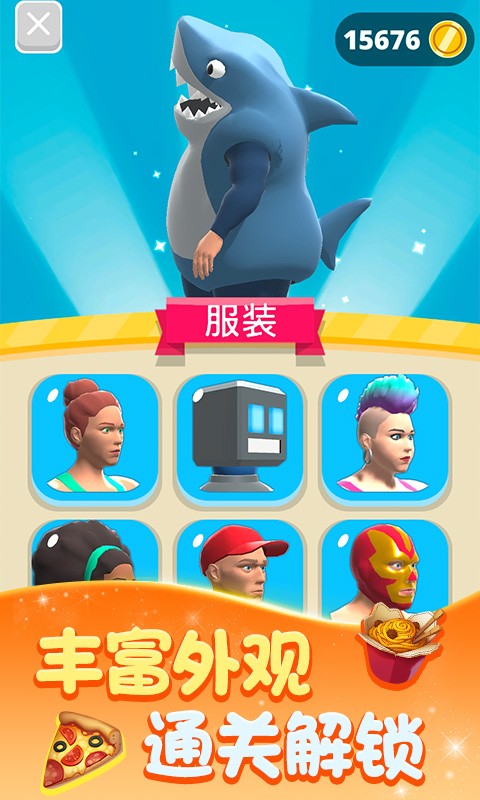 获取不同的食物,控制体重来通过不同的障碍,注意不能过胖或者过瘦。只要通关就能获取丰富的外观形象,快来一起挑战吧!