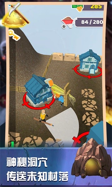 探索不同类型的美丽矿石,并销售它们以制造黄金。但在销售之前,堆栈论文在你的背上徘徊并制作巨大的堆栈!在挖掘时要注意,你可能会在你的道路中遇到秘密遗址,这将为您提供真棒的奖励。使用你的黄金升级你的基地和你的镐更强大。