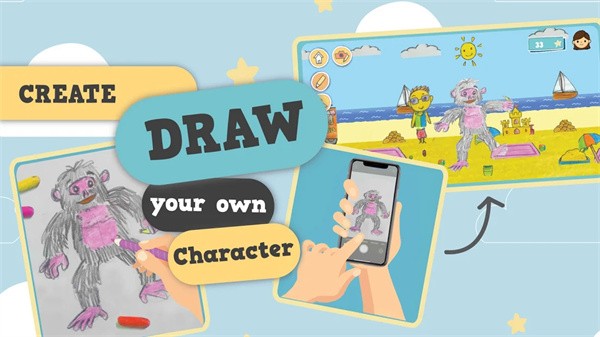 最让我觉得有趣的是游戏的绘画功能,你可以用真实画笔在纸上创作,然后将作品融入游戏世界,甚至通过AR模式让画中的角色“活”起来!这种玩法不仅激发孩子的创造力,还能让他们感受艺术的魅力。