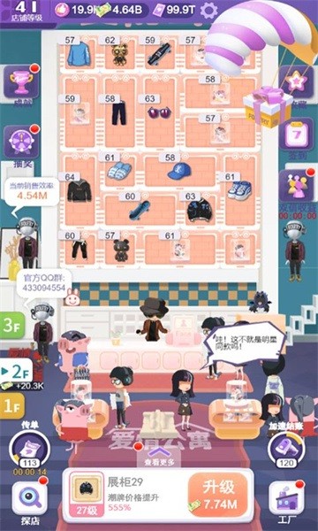 游戏整体以潮流街头文化为主要风格,Q版的人物造型,海量的潮牌商品、停不下来的魔性经营,让你体验到独具潮流元素的创意游戏!