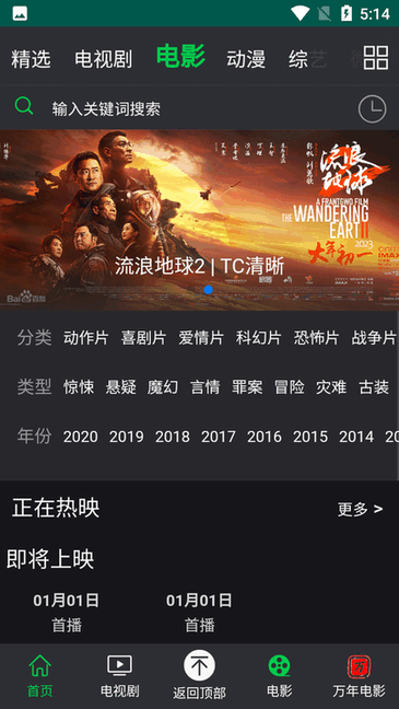 -- 详细的分类,可根据类型、地区、语种和年份来挑选,免费观看