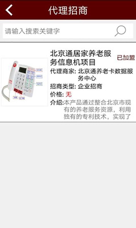 查看代理招商,可输入关键词搜索查询,便于轻松找到