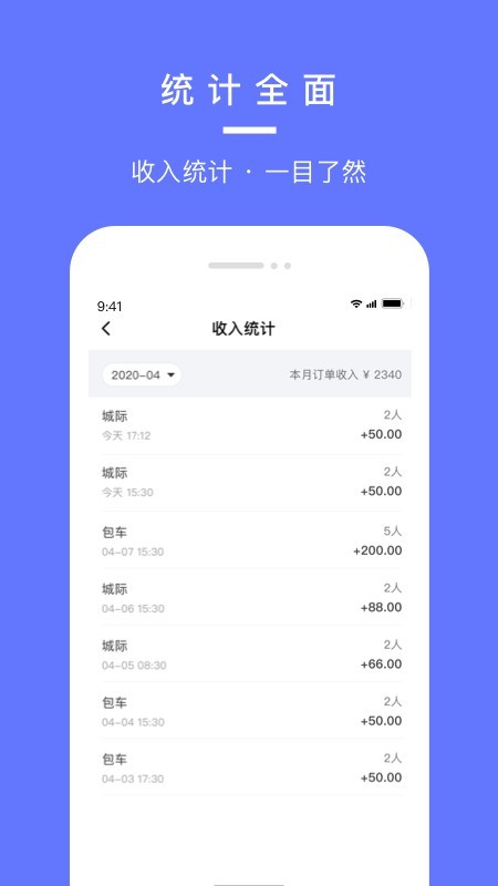 4、统计全面:一目了然,收入统计实时查看。