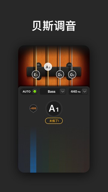 用户可以选择手动或自动调音模式。自动调音模式可以自动识别乐器弹奏的音高,并指导用户进行调音。