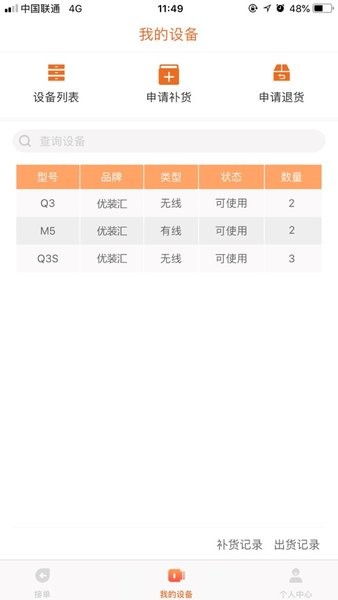 进入我的设备页面,就能了解所有设备状态,并能实现扫码入库