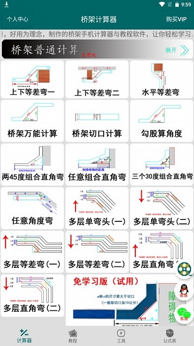 桥架弯头计算器,让桥架计算更简单,功能全面,使用简单,有无网络均可使用,桥架图解教程,各种桥架弯头计算,可直接得出画线尺寸图的那种哦,弯头角度计算,桥架爬坡计算,桥架水平弯头计算及多层桥架过桥弯的计算。
