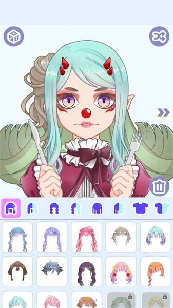 各种发型,眼睛,眉毛,角,嘴,漂亮的衣服和各种颜色的装饰品,使您可以制作出世界上最可爱的角色。