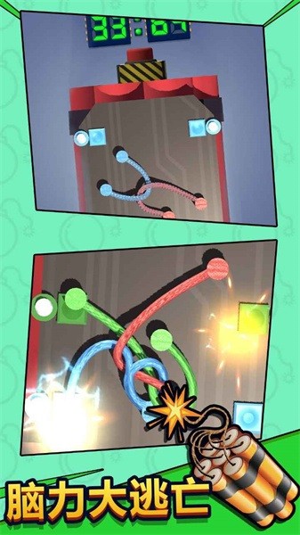 有趣的脑力益智游戏,在游戏中,你要在规定时间内解开缠绕在一起的电线,只有顺利解开电线才能保证炸弹不被引爆。 如此惊心动魄的游戏你准备好了么?一起来挑战吧!