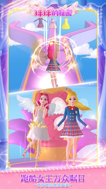 珠珠的秘密最新版游戏在这里你可以自由装扮,这是一个提供了多种玩法共同打造而成的换装系列手游,除了局内提供了素材之外,玩家还可通过跑酷的方式来解锁更多好看的衣服以及视频。