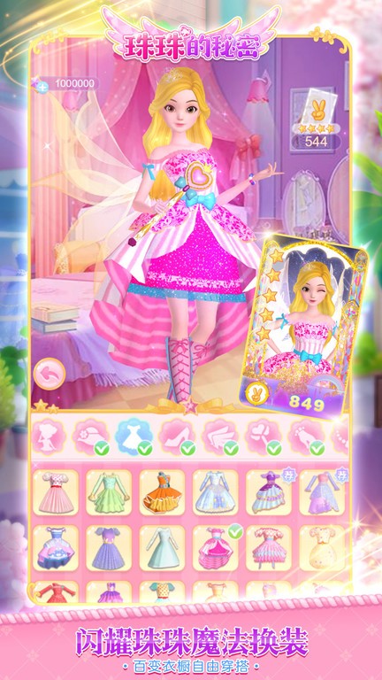 魔法三部曲之童话派对、梦幻圆舞曲、星空守护者,每一种主题都有多款精美服饰,快来珠珠的衣橱,尽情装扮吧!