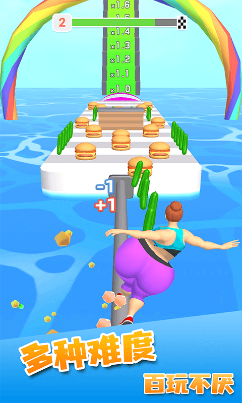 胖子快跑最新版为了帮助主人公顺利完成减肥,你需要开启无限挑战,在这个跑道上玩家将不断奔跑,通过运动、节食的方式来进行减肥,在这一过程中你将会遇到很多的美食诱惑,管住嘴巴迈开腿,一起来减肥!