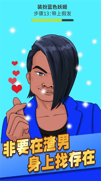 英雄可以受委屈,但你不能踩我的切尔西!帮小伙子改造化妆变身成蓝色妖姬,你要帮他修剪头发、清理皮肤、化妆等。一步步将小伙子改造变成蓝色妖姬。
