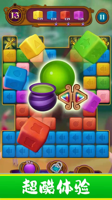 通过消除屏幕内方块,达到相应分数,挑战自己最高分。