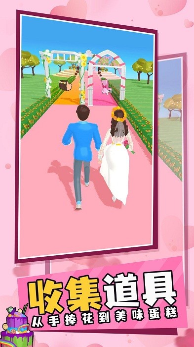 新娘快跑完整版你将成为一名美丽的新娘,玩家需要做的就是在跑道中不断奔跑,是主题新颖的跑酷游戏。通过跑酷来收集婚礼上所需要的物资,从基础道具、服装婚纱、场景布置到最后的婚礼都可以体验。