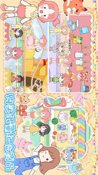 为可爱的角色挑选时尚搭配,穿上精致服装,一起出发到游乐园度过欢乐的一天!
