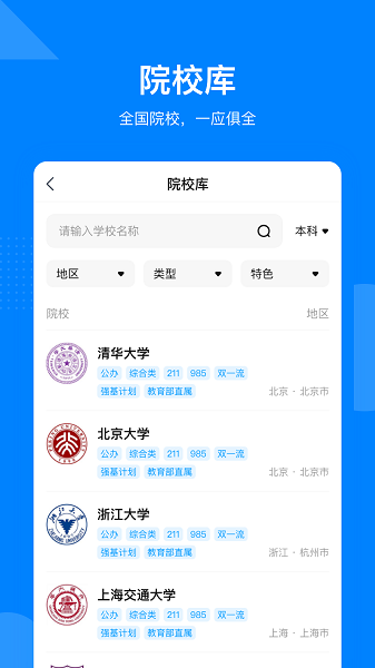 【高校库】覆盖国内各大高校,想查询的985/211/双一流高校情况随时掌握,帮考生快速选择心仪大学。