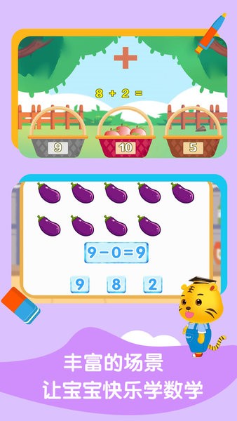 0-20以内的加减法运算学习都有提供,能够让宝宝掌握数学运算技巧;