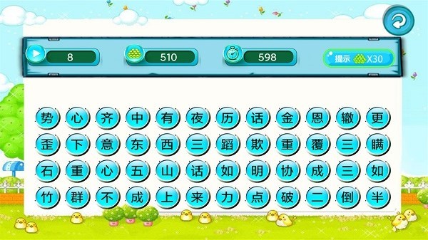 消成语:您要把给出的汉字组成成语,考验您的成语水平。