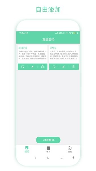 一款协助直播的工具APP,可以实现在直播过程进行悬浮提词和手持弹幕功能。目前支持功能如下:全局悬浮提词、页面内竖屏题词、实现手持弹幕、模拟LED字幕显示、自由添加个人词库等。