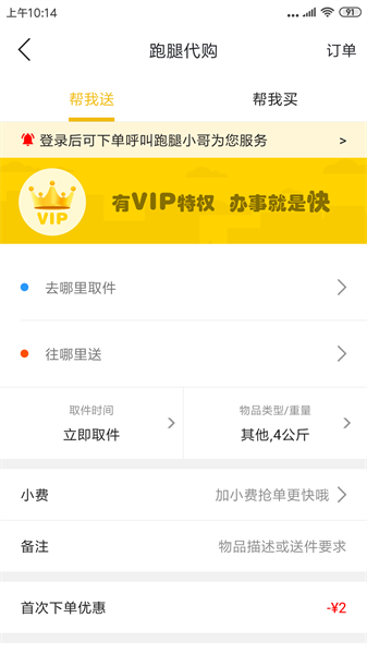 5、用户选择跑腿服务时,输入的送达或取件地址可进行对调。