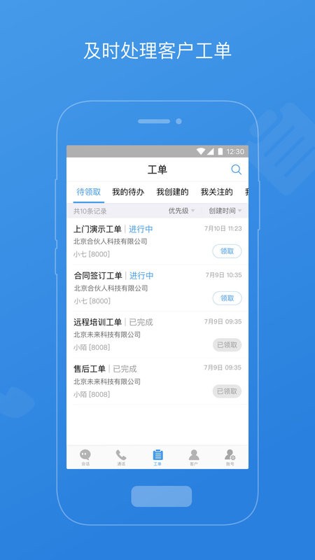 全面完善的手机端工单处理系统,工单回复、工单变更、工单转派等,查看工单所有事件。