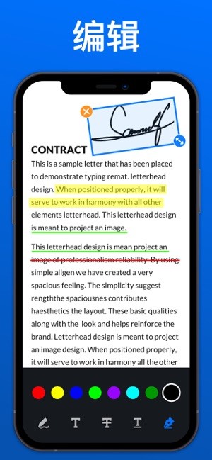 你还可以在扫描结果中添加电子签名。 有了DocScan,在发送和打印PDF文件之前,轻松签署文件!