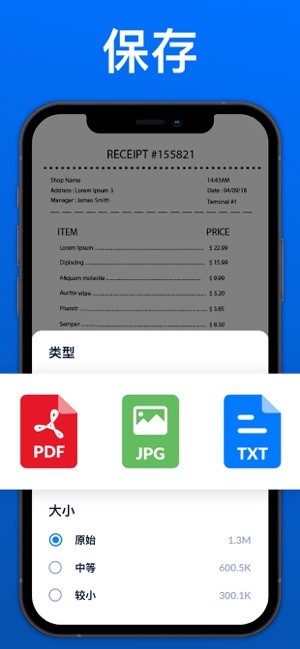 只需点击一下,即可轻松扫描,将各种文档转换为PDF格式 - 收据,发票,笔记,文档,照片,名片,证书,白板等。