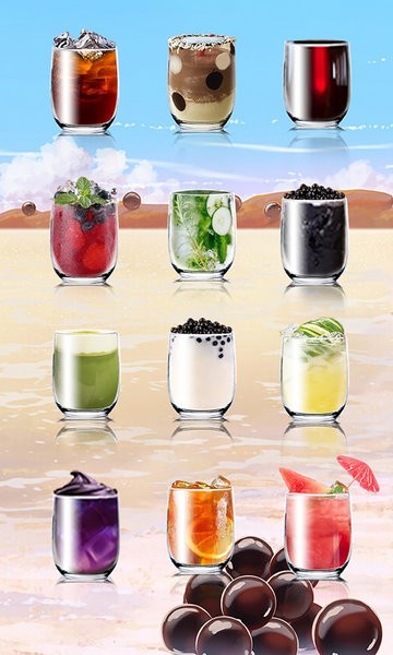 2、超多种口味饮料,还有冰块和水果,制作的还挺逼真的!