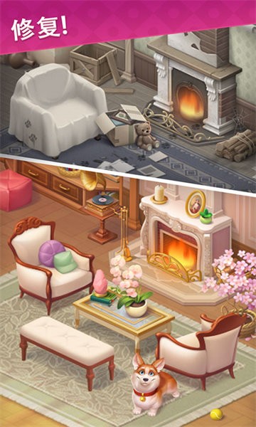 1.将装修与合成相结合,给游戏增加无限魅力,一起装饰家具,翻修房子。