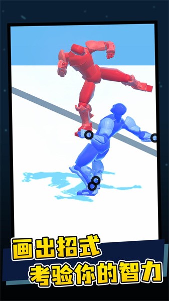 画线决斗是一款玩法非常新颖的对战游戏。玩家在这款游戏当中可以操作一个小蓝人或小红人,他们所有的技巧都是经过我们亲自来控制的,每一次的战斗都非常的有意思,因为他们会有很多的招式需要我们画出来,你画什么他就会打出什么样的招式,完全凭着我们的画画技巧来挑战的。
