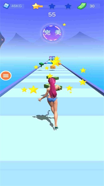 1.玩家在游戏中扮演可爱的女孩,通过跑酷一路收集哑铃减肥。总的来说,非常适合打发时间。