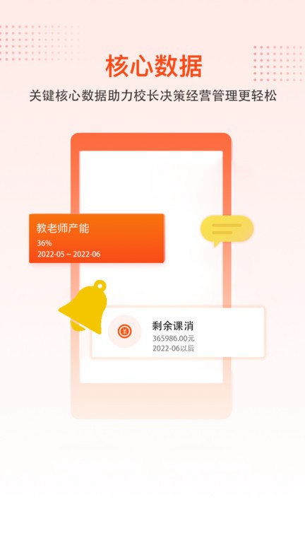 培训机构的教师用来管理咨询学员、跟进、试听、查看学员剩余课时有多少,学员请假审批,老师查看课表、看课上课记录,上课点名、课消记录、家校服务、给学员报名、管理订单、报销管理、查看各种财务数据、查看待办事项提醒、接收各种消息和查看我的工资、我带的学员等功能。